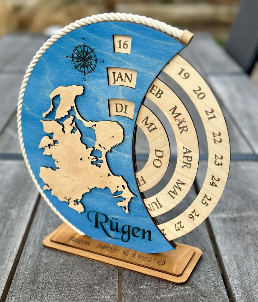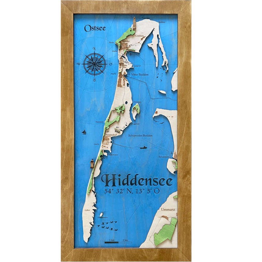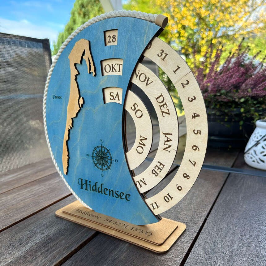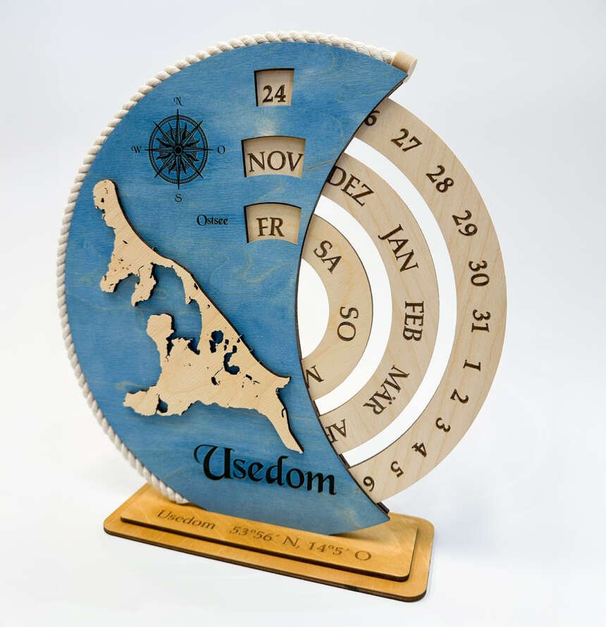 von topografischen Inselkarten über dekorative Holzuhren, Drehkalender mit Inselsilhouetten bis hin zu maritimen Designstücken.