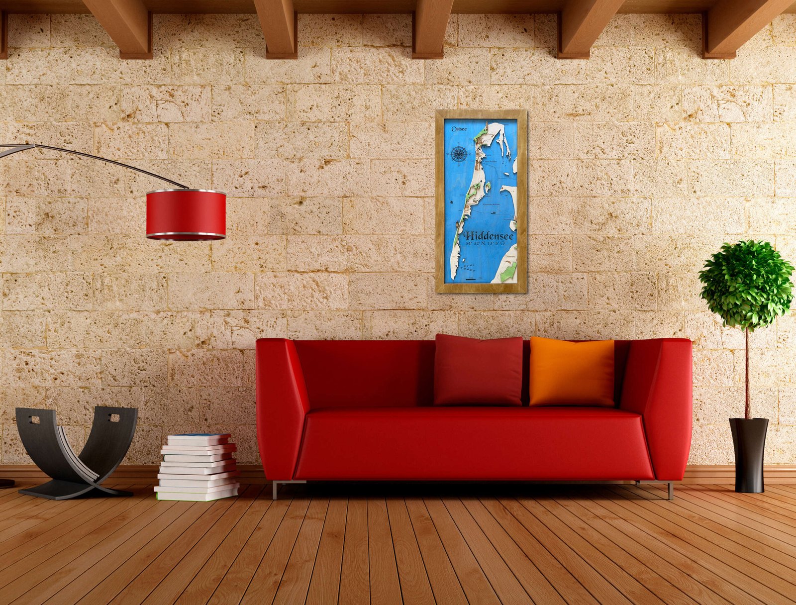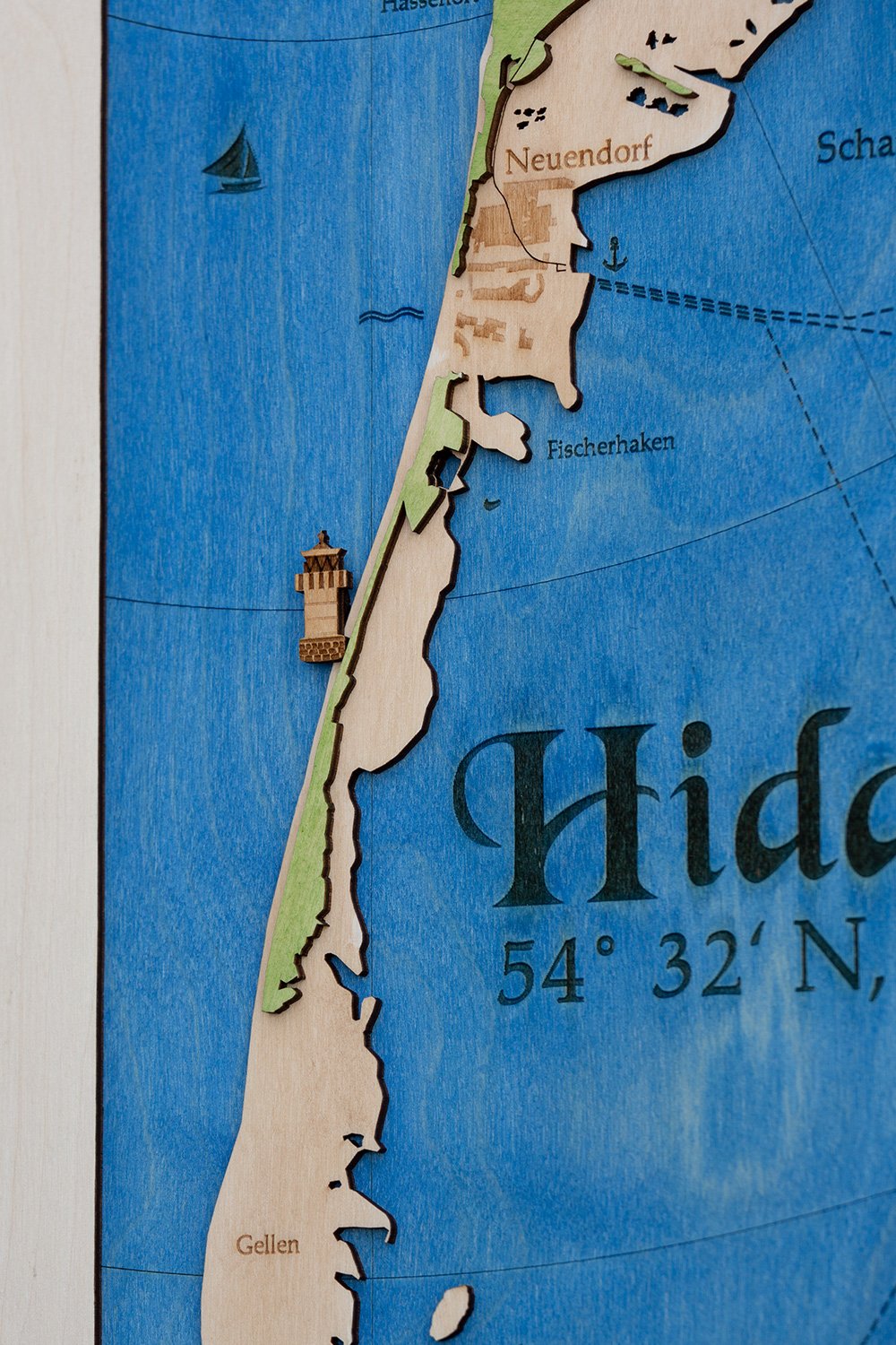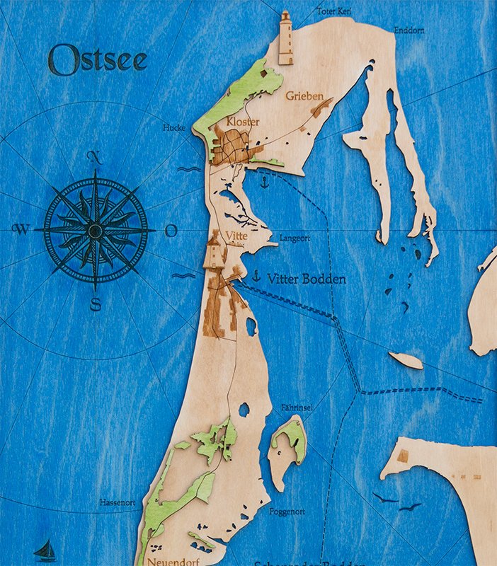 Topografische Holzkarte Insel Hiddensee – Ein Meisterwerk aus Holz und Präzision