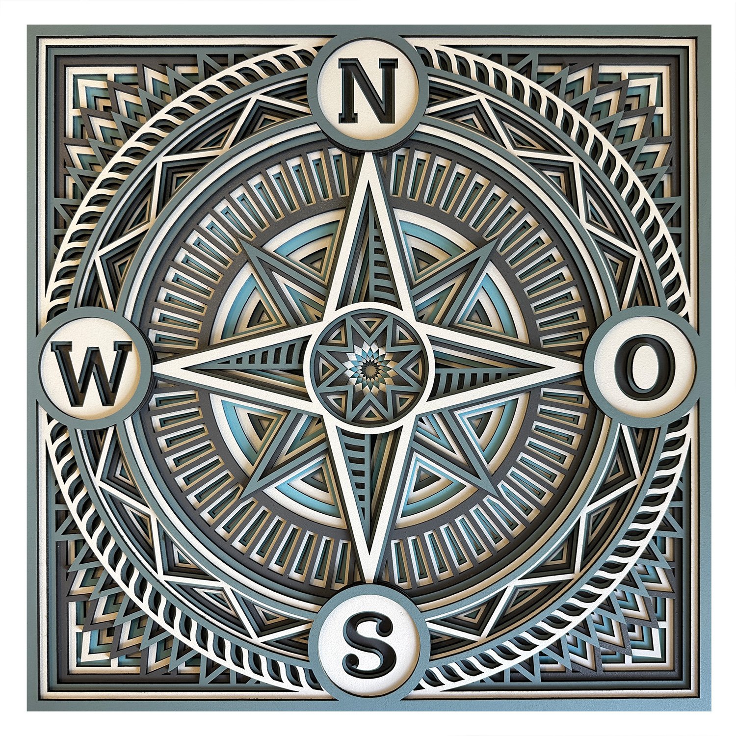 Wandbild „Windrose“ – Maritimes Design aus 9 Schichten Holz