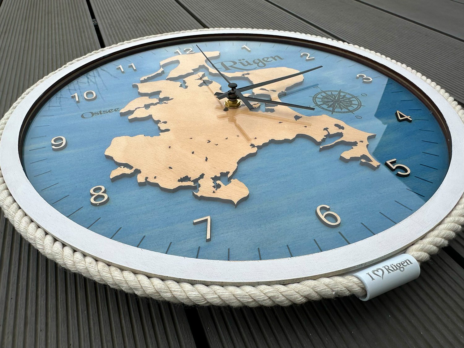 Maritime Wanduhr „Rügen“ – Handgefertigtes Unikat mit Inselcharakter